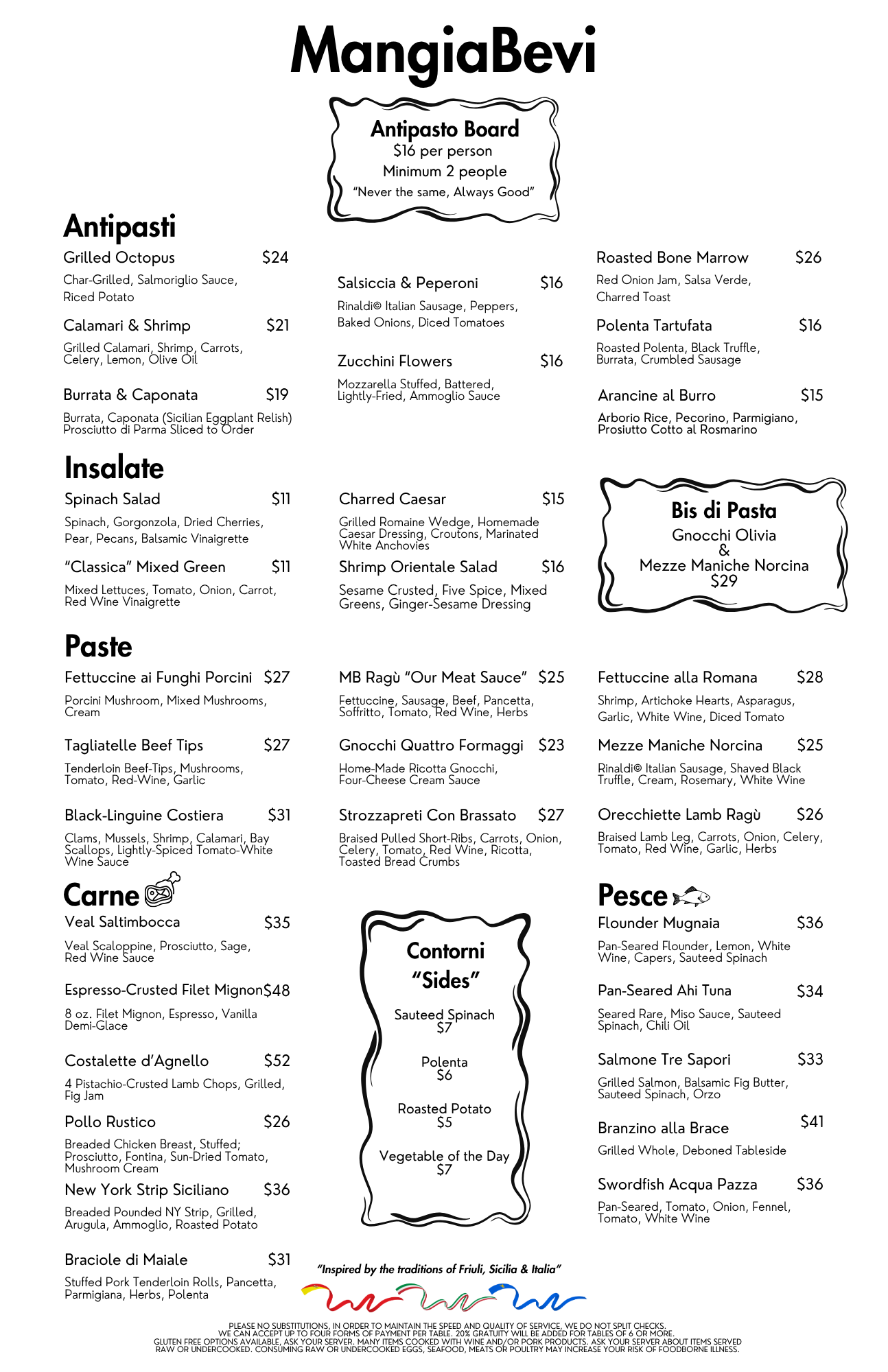 GLUTEN FREE OPTIONS AVAILABLE, FEEL FREE TO CALL OR ASK YOUR SERVER. WE CAN CATER TO MOST ALLERGIES.(Downloadable Menus Below)